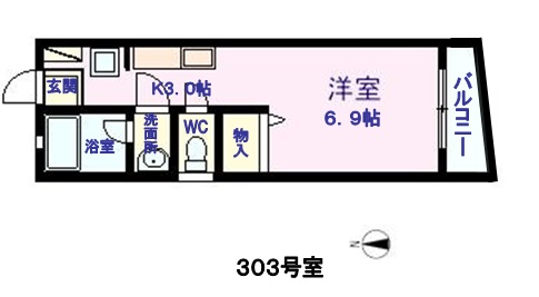 | 間取内容 | 洋室6.9畳 K3畳 | ||
