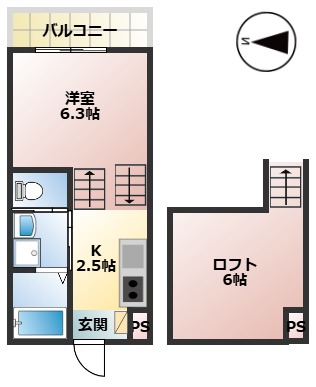 | 間取内容 | 洋室6.3畳 S6畳 K2.5畳 | ||