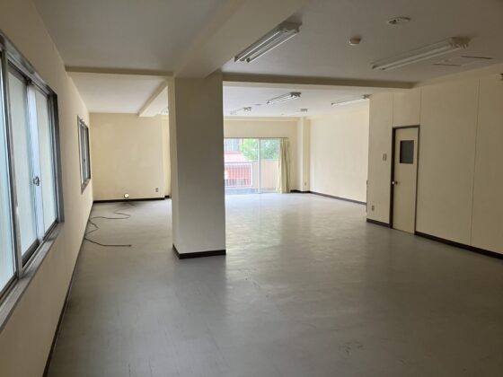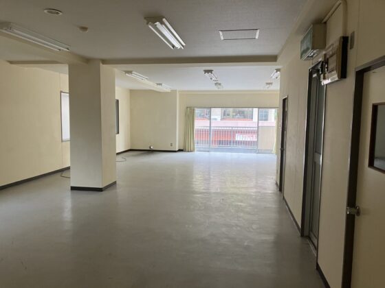 バス停そばのテナント物件!バス道路沿いでバルコニーからの広告効果もあります。同ビル2階の別テナント(25㎡)もセット賃貸可能ですので、もう少し広さがほしいなどあればご相談ください。